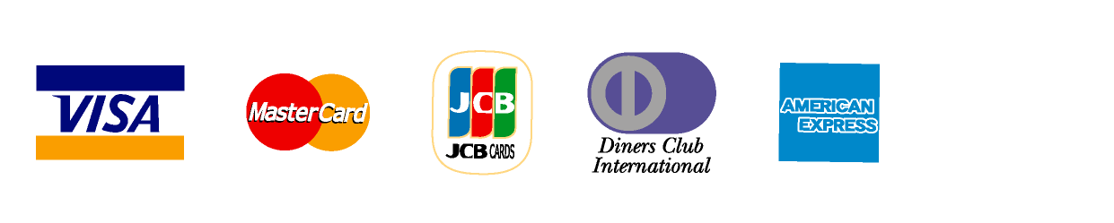 当店でご利用いただけるクレジットカードは、VISA、MASTERCARD、JCB、ダイナース、アメックスのマークが表記されたカードです。