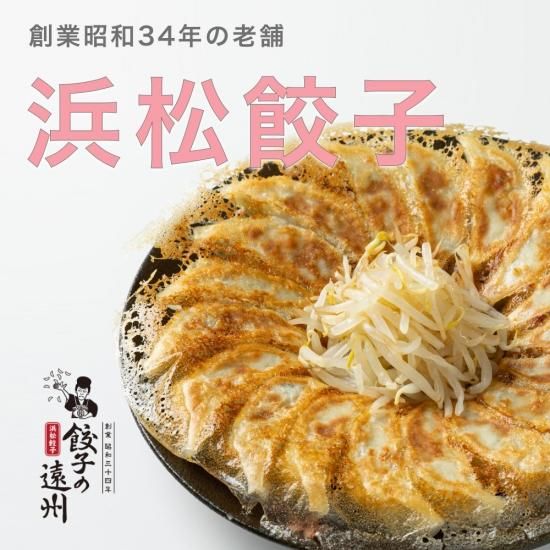 浜松市有楽街にある、おしゃれな人気の居酒屋「餃子の遠州」さんの、人気メニュー。昭和34年に創業した職人がつくった浜松餃子の秘伝のレシピを受け継いだ王道の浜松餃子です。浜松人にとって餃子は、非常に身近。だから毎日食べても飽きない味にしたいと考え、さっぱりと何個でも食べれちゃう餃子です。